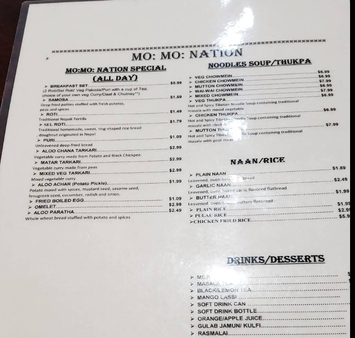 The Golo Momo Tikka Masala was dry and tasted like reheated leftovers. Both Chicken Chowmeins were greasy, overcooked, and loaded with oil — even after paying extra for double eggs ($2.98 each), they barely had any flavor. The Chicken Chilli was soggy instead of crispy, and had a strange aftertaste. The Veg Momo Tikka and Veg Momo were completely bland, with thick dough and no seasoning. The Chicken Golo Momo was chewy and almost cold when it arrived. Even the Mango Lassi tasted watered down